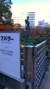 クリスマスマーケットのにぎわいの一方で、紅葉の見頃を過ぎた昼間の毛利庭園は