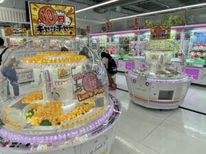 白を基調にした明るく広―い店内にはワンフロアにずらーっとクレーンゲームばかりが並んでいます。