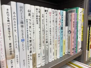 など60歳以降の方の生き方指南書的な書籍が多く陳列していました。