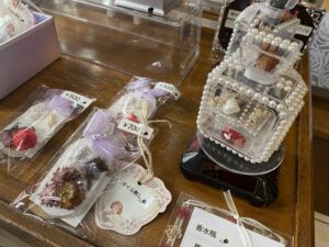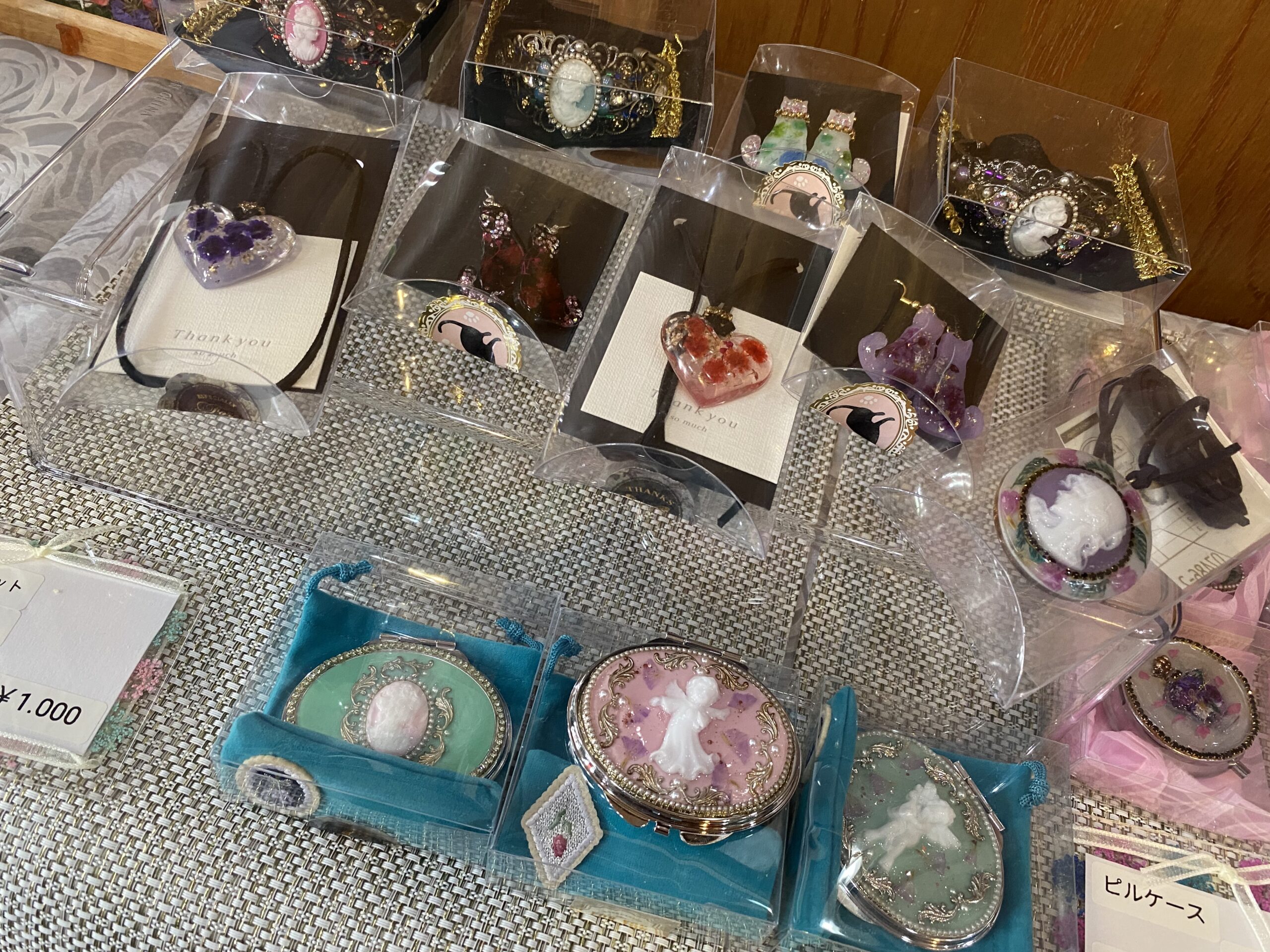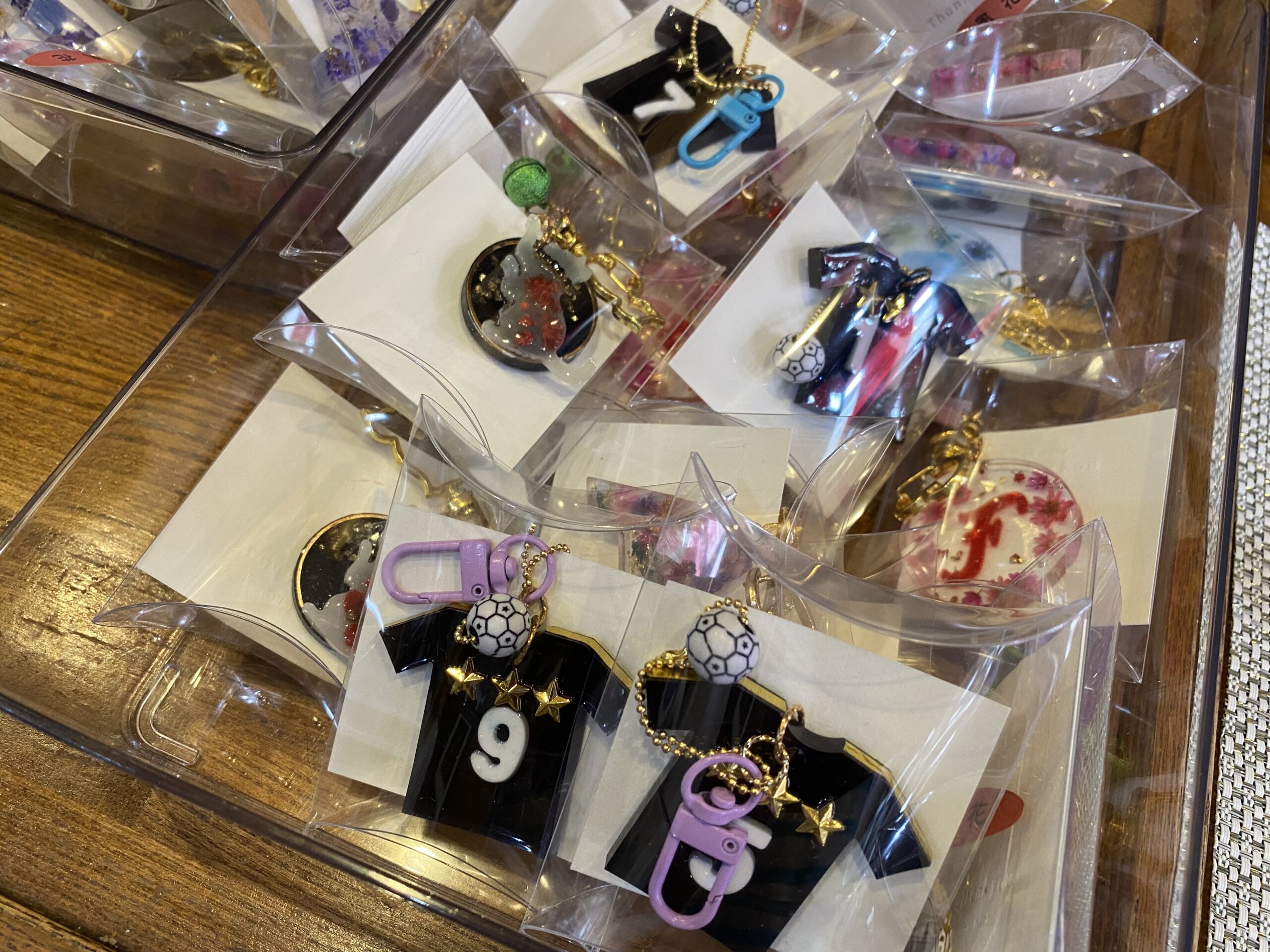作品は香水ボトルやドーム、キーホルダーなどおひとりで製作されているとは思え位ほど多岐にわたって