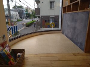 仕切りに黒板が設置されていて自由に描くことが出来ます。大人の私も大興奮しました。笑