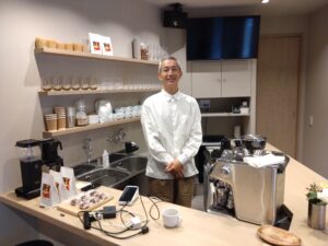 美味しいコーヒーだけでなく、田中さんやお客さんとのお喋りを楽しめるのもSANKAKU COFFEE STAND魅力の1つです。