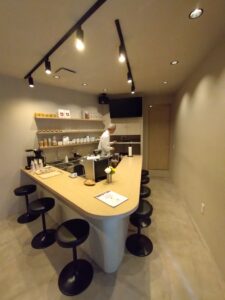 店内に入ると、特徴的な三角形のカウンターがお迎えしてくれます!