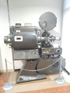 調布にまつわる様々な物が展示されており、大映撮影所で実際に使われていた映写機もありました。