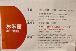 | 土曜市 | 毎週土曜日はお米・ご飯の供10%引き |