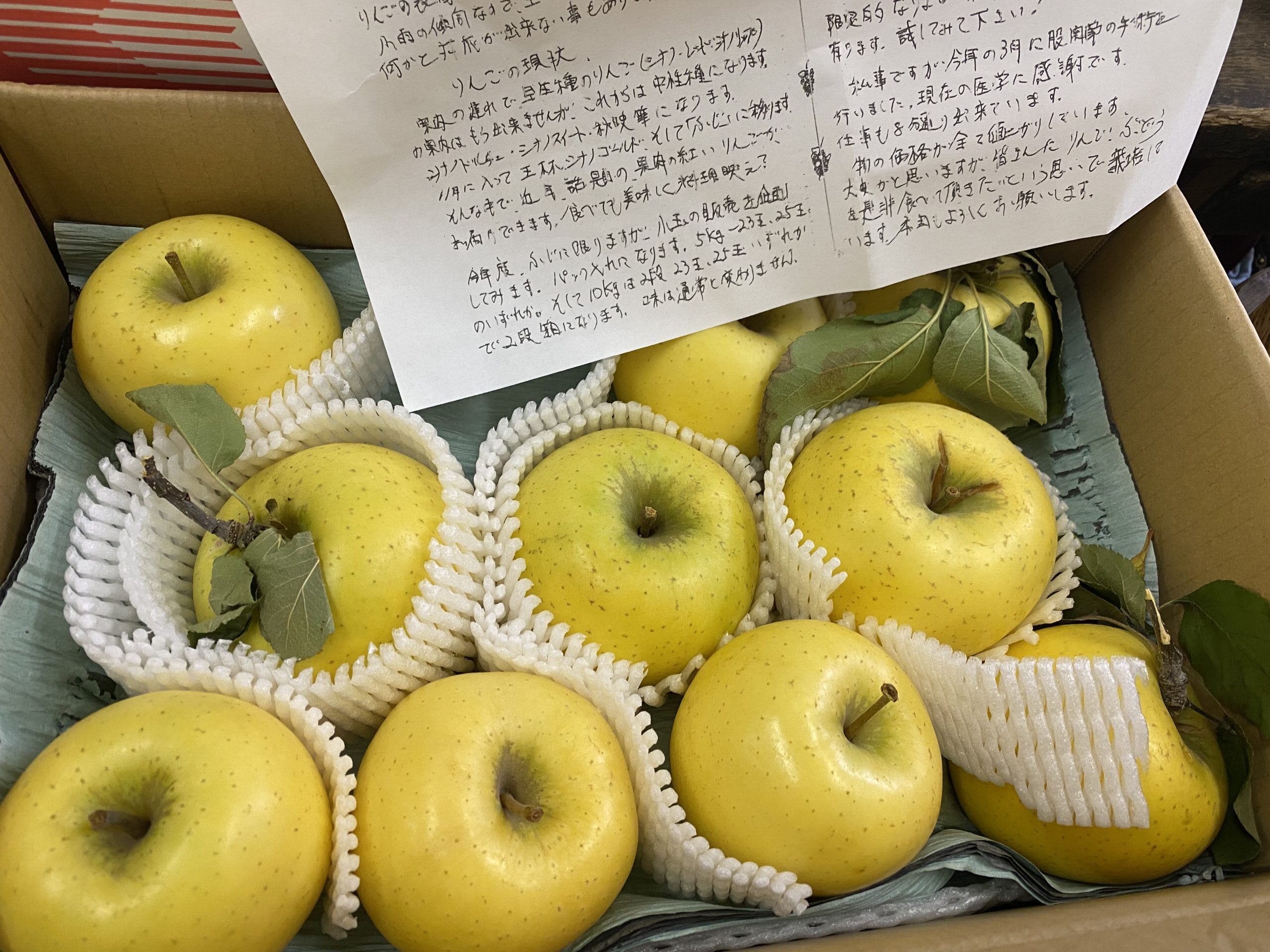 今日入荷したばかりというリンゴは、箱の周りに香りが広がっていて、
