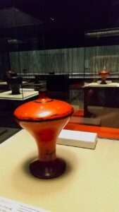 を一堂に集めて紹介する本展では、先ず、アイコニックな漆塗りの壺=大ぶりの瓶子達が