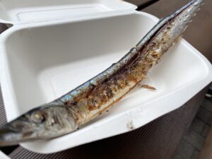 個人的に目を引かれたのが、さんま1本を丸焼きにした模擬店で思わず購入してしまいました。