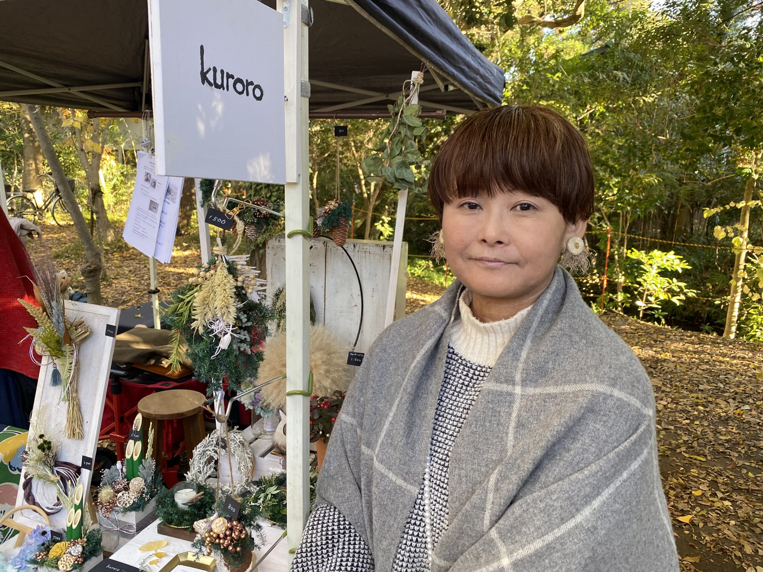 ドライフラワーを使ってお正月飾りの製作・販売をされていたkuroroさんです。
