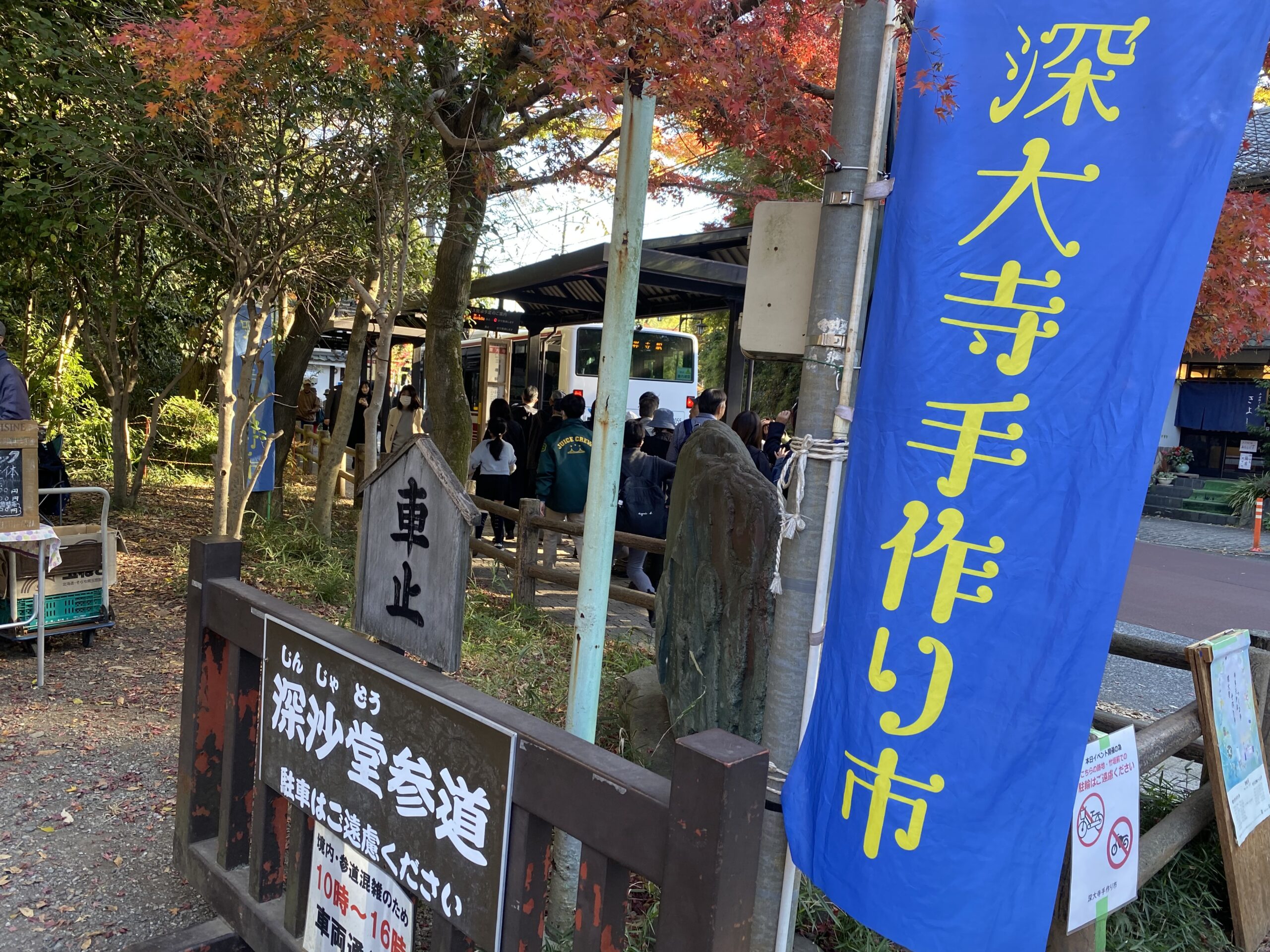 深沙堂参道のスペースをつかって定期的に深大寺手作り市が行われています。
