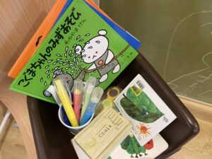 また絵本なども多数用意されていて、本日のレポート中も子どもさんが来店されるとひとさんが