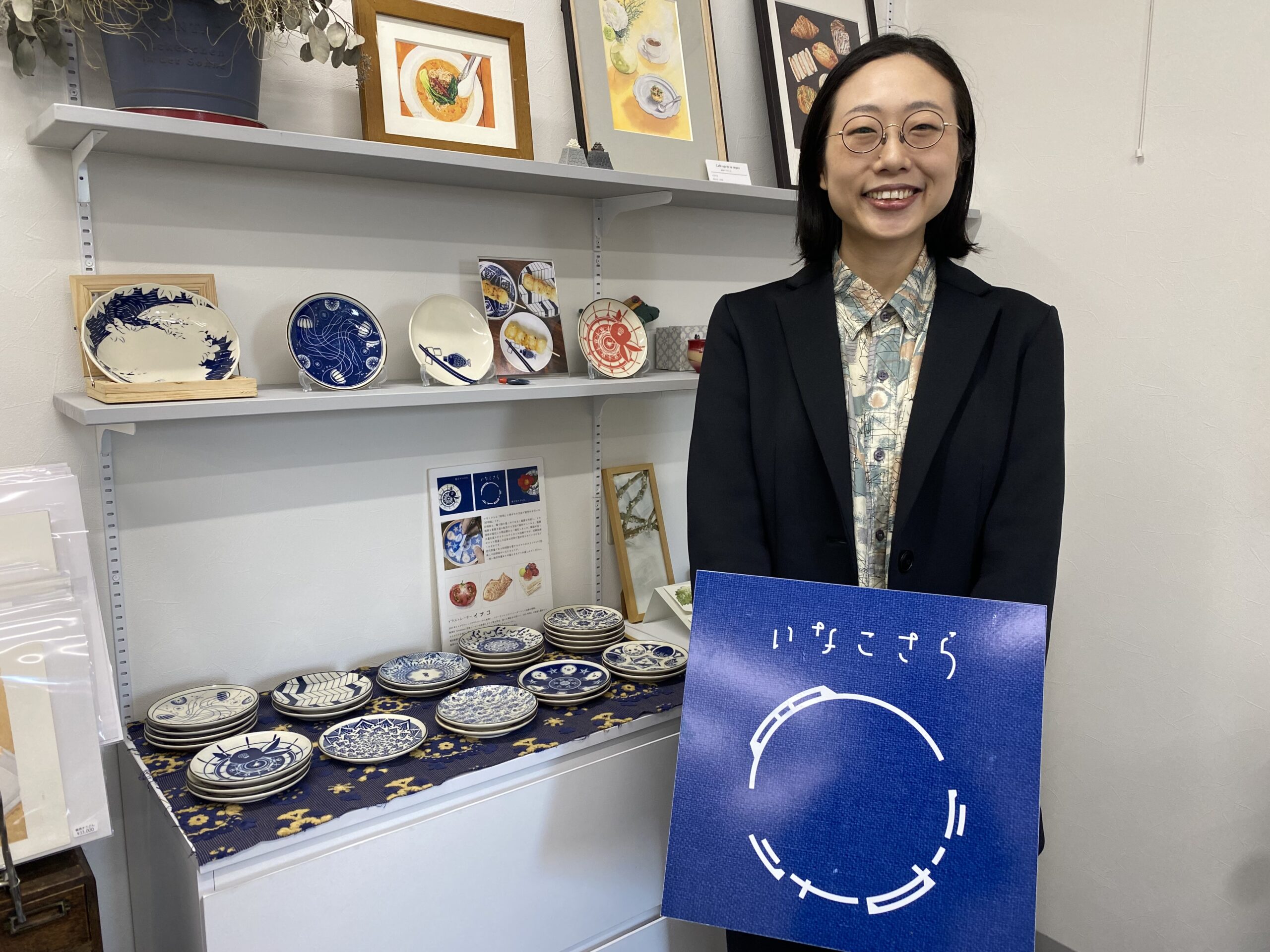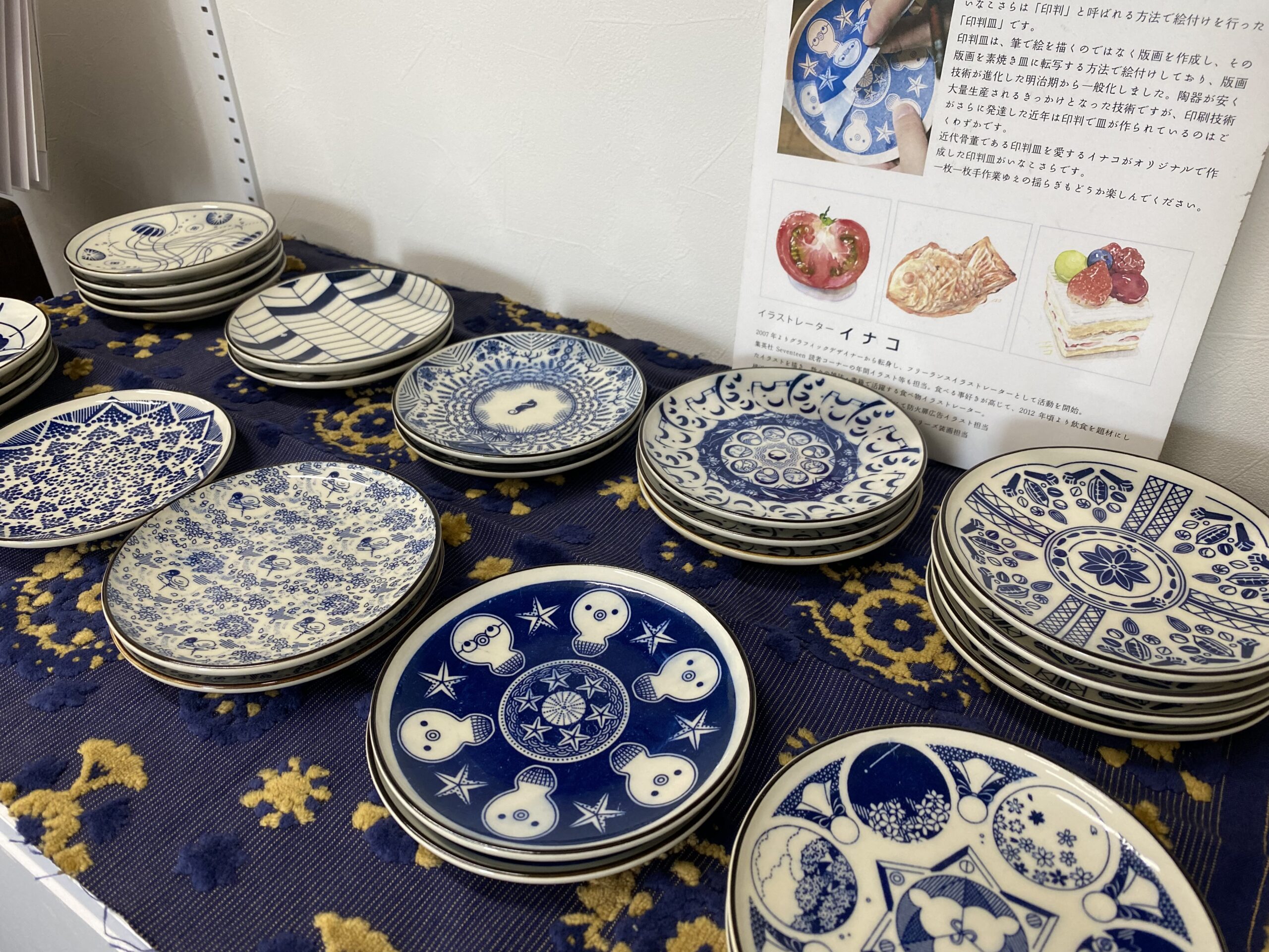 店内にはイナコさんがデザインされたお皿「いなこさら」を中心に様々な作品が並べられています。