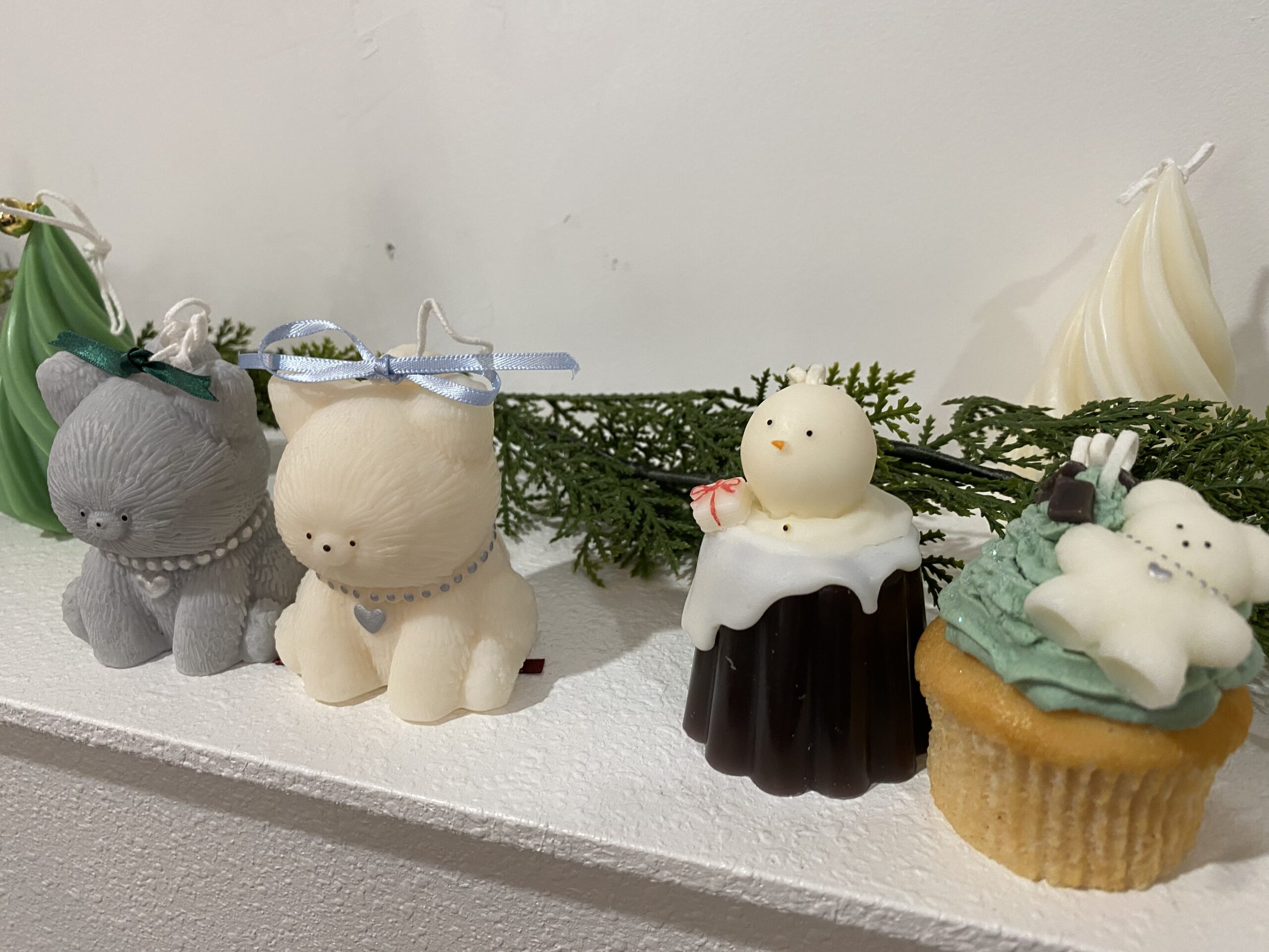 シーズンに合わせた可愛らしくて愛くるしい様々なキャンドルが並べられています。