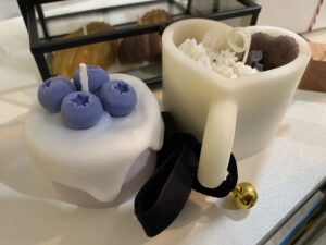基本的には韓国キャンドルの製作をされつつ、ご来店された方にアトリエ内の作品を販売されています。