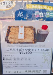 | 電話番号 | 042-482-8847(年越しそばはご注文できます。ご予約は賜っておりません) |