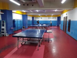 左右、後ろにもしっかりスペースがあり、天井も高く、思う存分に卓球が楽しめます。