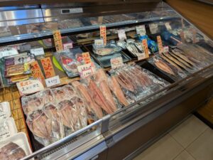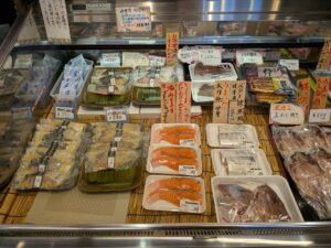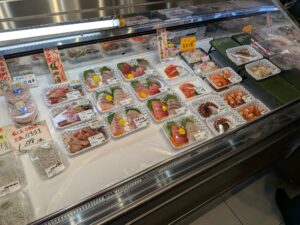 きょうも新鮮なお刺身や切り身・漬魚・開きが並んでいます