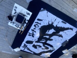 また直前まで、1階ウッドデッキのステージスペースで、行われた書道パフォーマンスの