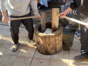 またお正月にふさわしいお餅つき大会も行われていました。