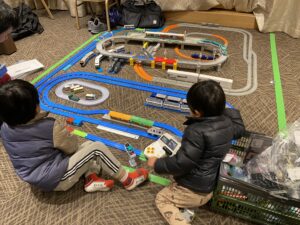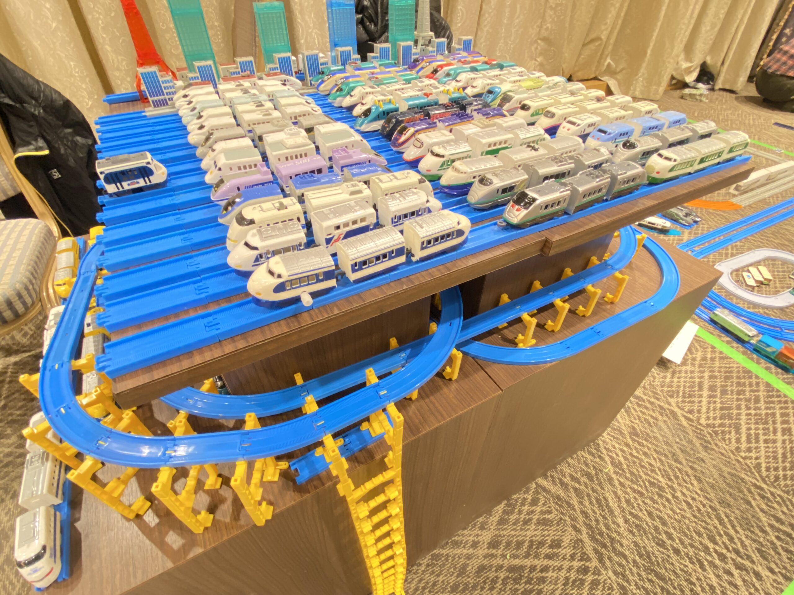 子どもさん達にはなかなか揃えられない圧巻の車両数と線路の数々。