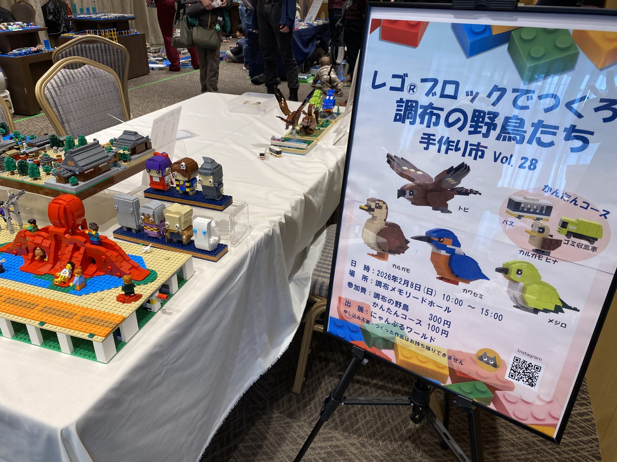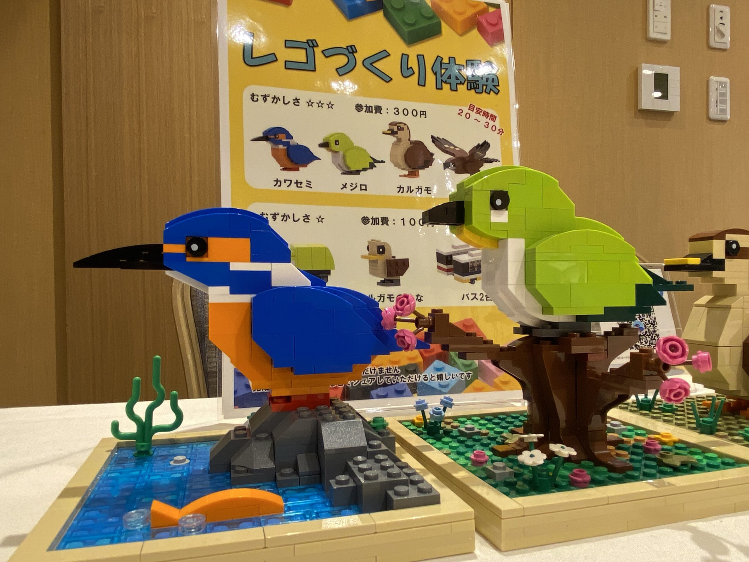 レゴブロックを使って、カワセミやカルガモといった調布で作れる野鳥を作るというワークショップで、