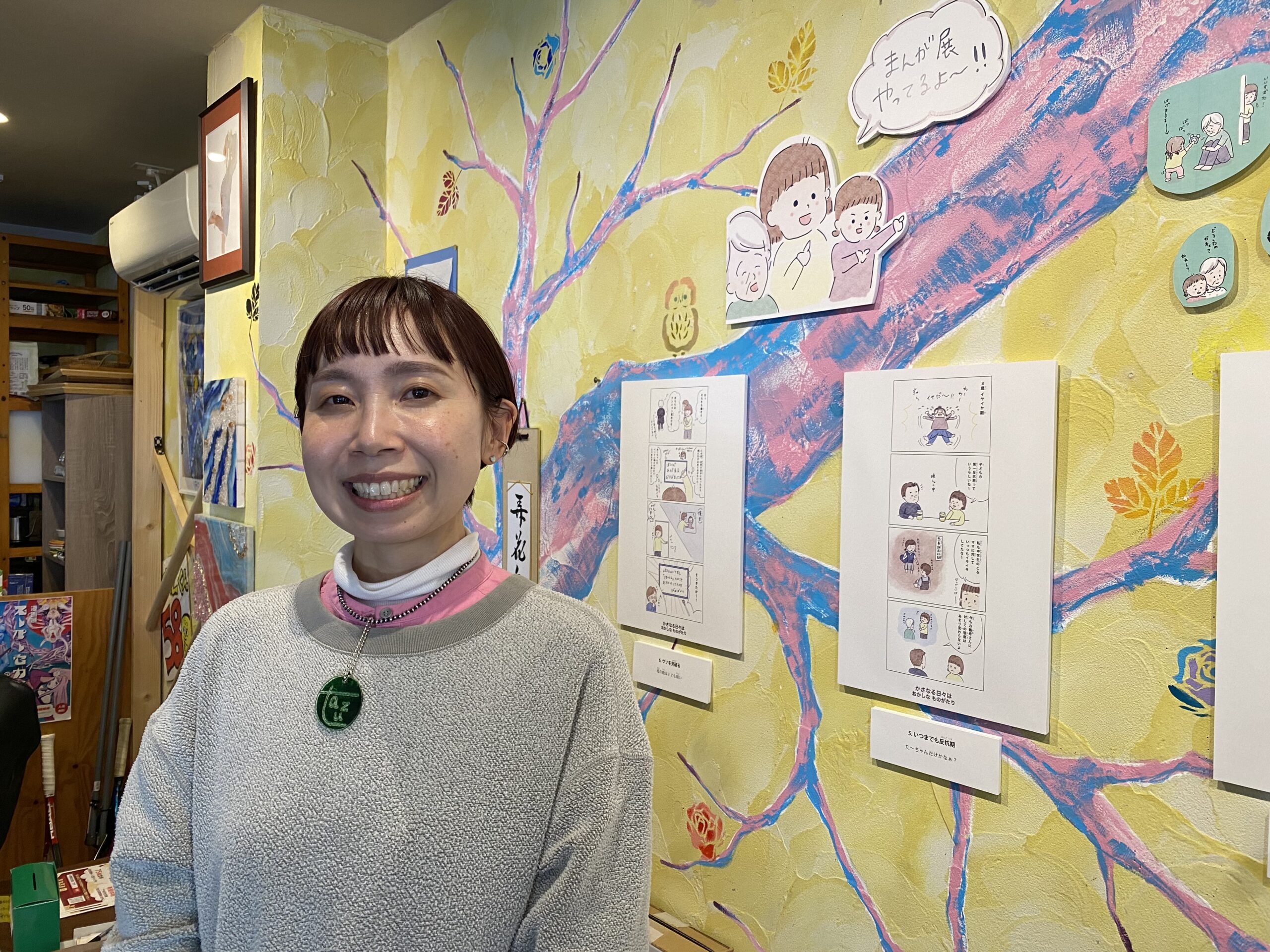 大澤さんのエッセイ漫画を展示し、「フラッと立ち寄った人でも気軽に見られる展示」として、