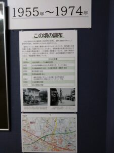 それぞれにポスター・この頃の調布の出来事・調布にゆかりがある映画人・ロケ地の紹介が展示されています。