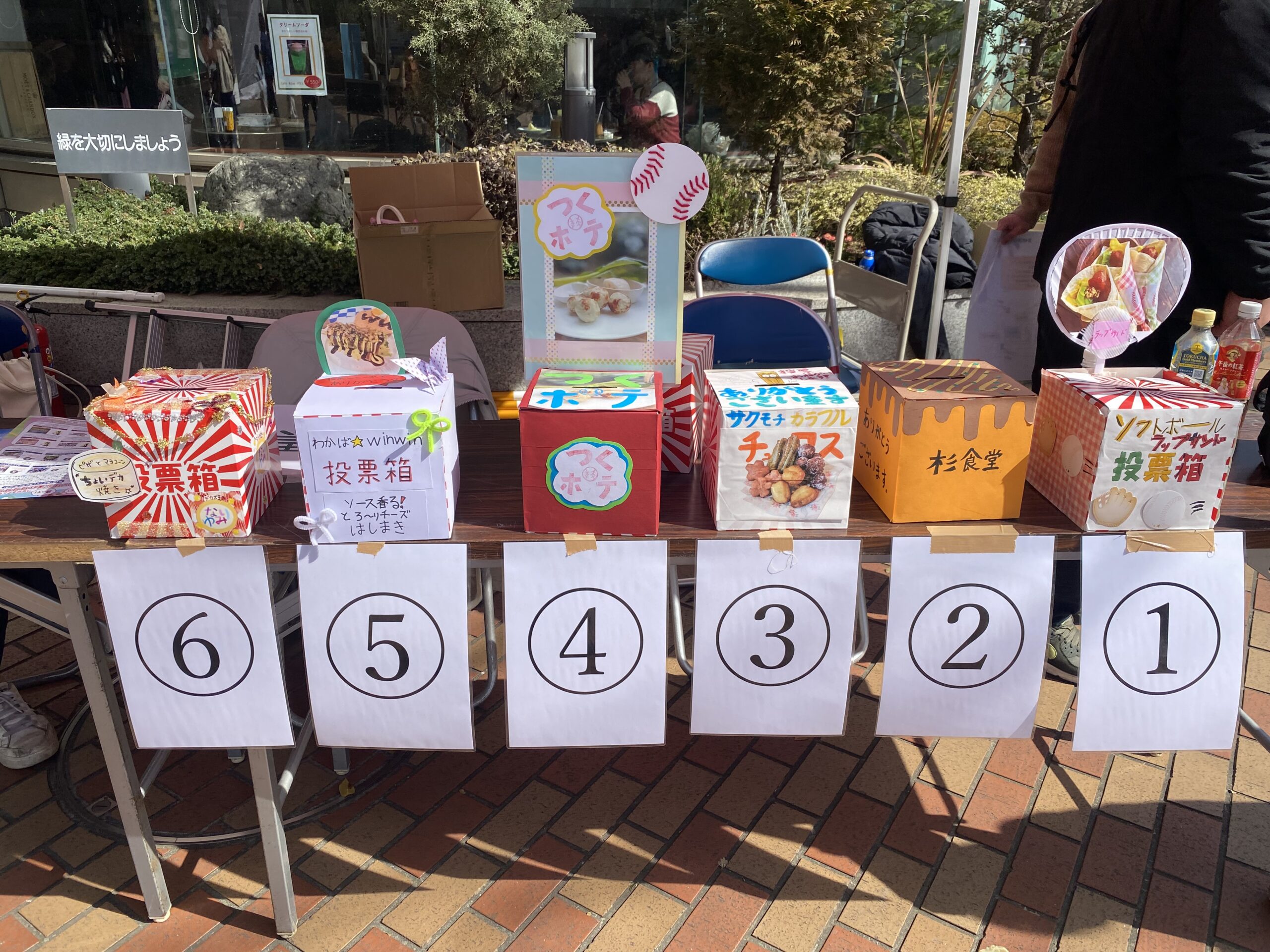 食後にそちらを各屋台の箱の中に入れて優勝者を決める仕組みです。