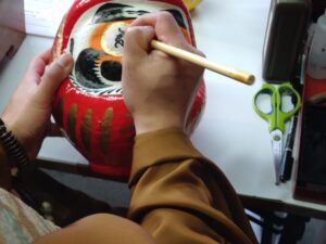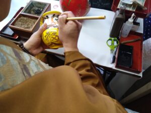 お気に入りのだるまを購入した後は、だるま目入れ所で僧侶が直々に目入れをしてくれます。