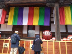 本堂にも大小さまざまなだるまが並べられており、いつもと違う深大寺を楽しめます。