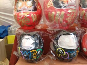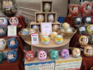 こちらのお店では絶妙な色味のかわいらしいだるまが並んでいました。