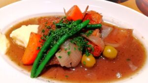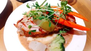たっぷりと添えられた大き目野菜やマッシュ、ソースのいずれも、嘗てフランスで食べていた