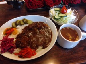 私はがっつり、牛すじカレーミニサラダ付き(850円)を頂きました。