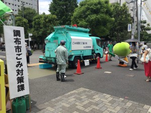 調布市ごみ対策課のブースでは、「せん定枝のチッパー車」の実演が行われていました!