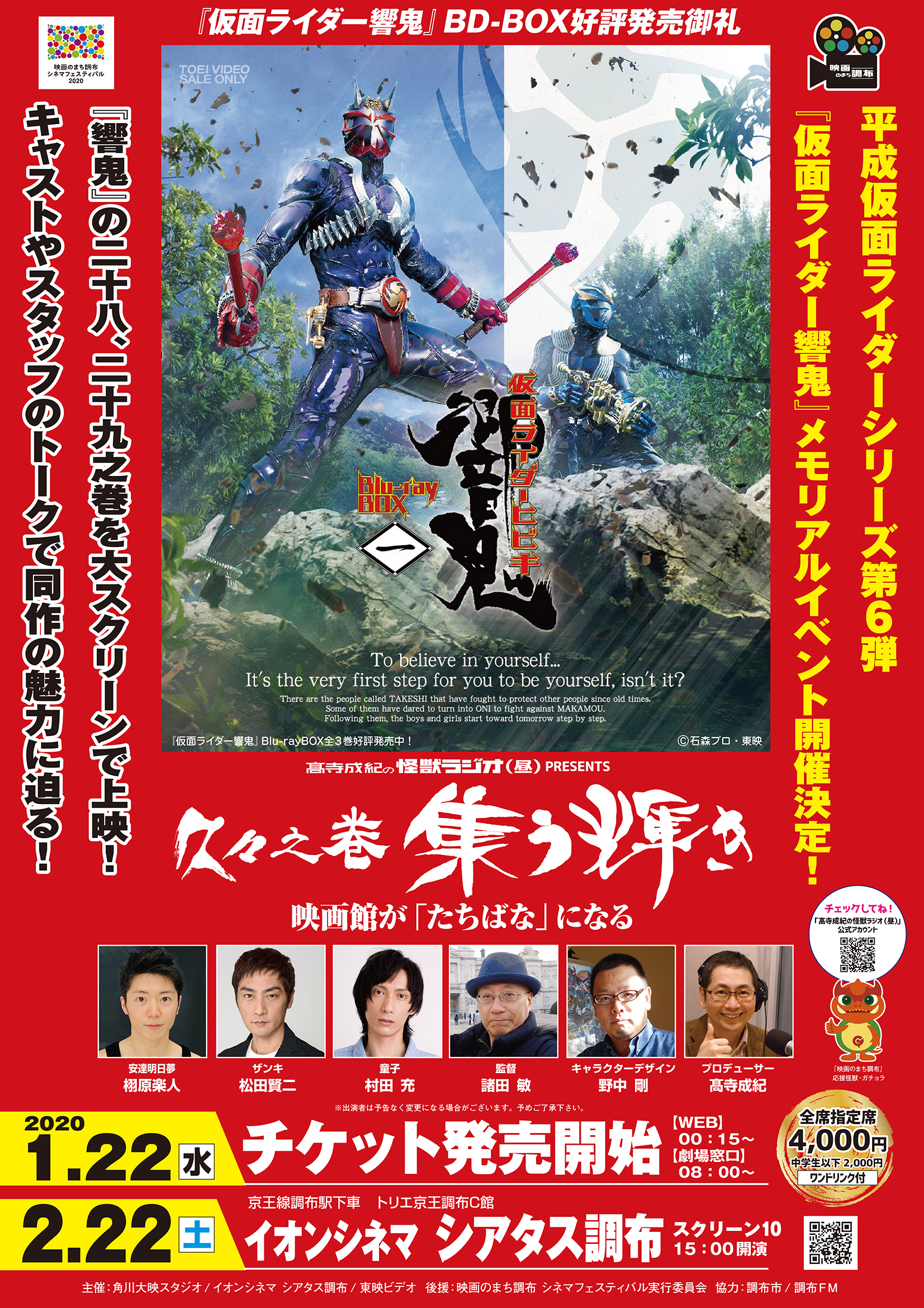 シネコンの大スクリーンでのテレビエピソードの特別上映と、スタッフ&キャストによるトークショーを通じて『響鬼』がどんな番組だったのかを当時の少年少女たちと改めて共有し、確認出来ればと思っています。