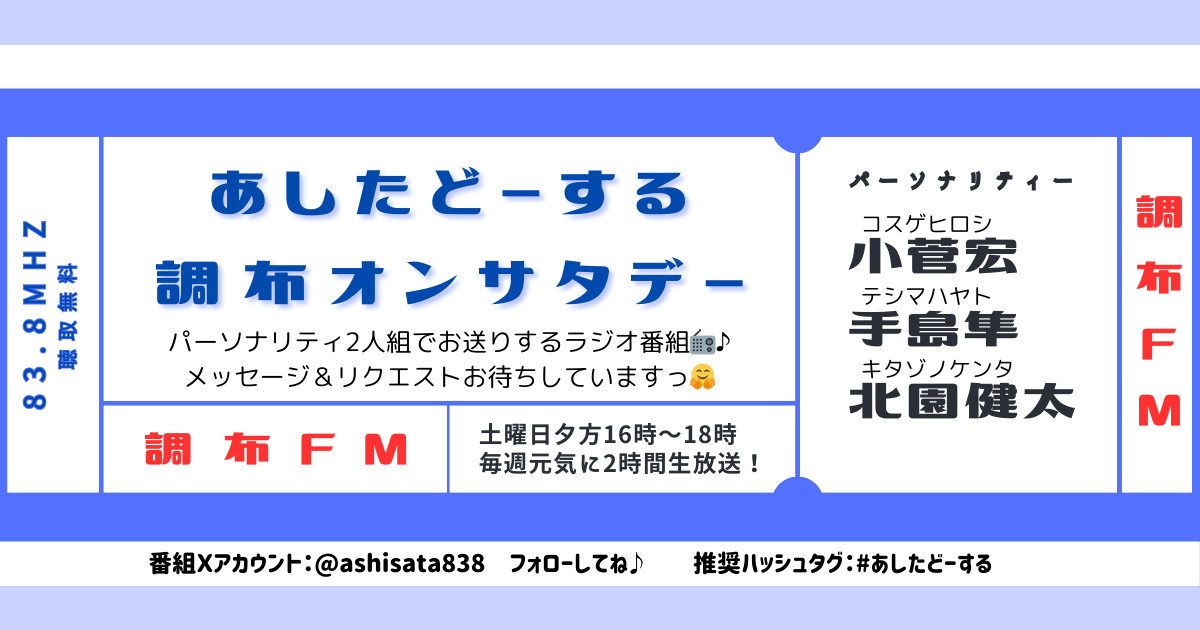 調布市周辺の情報を中心に、週替わりパーソナリティ2人でゆる~くお送りします!
